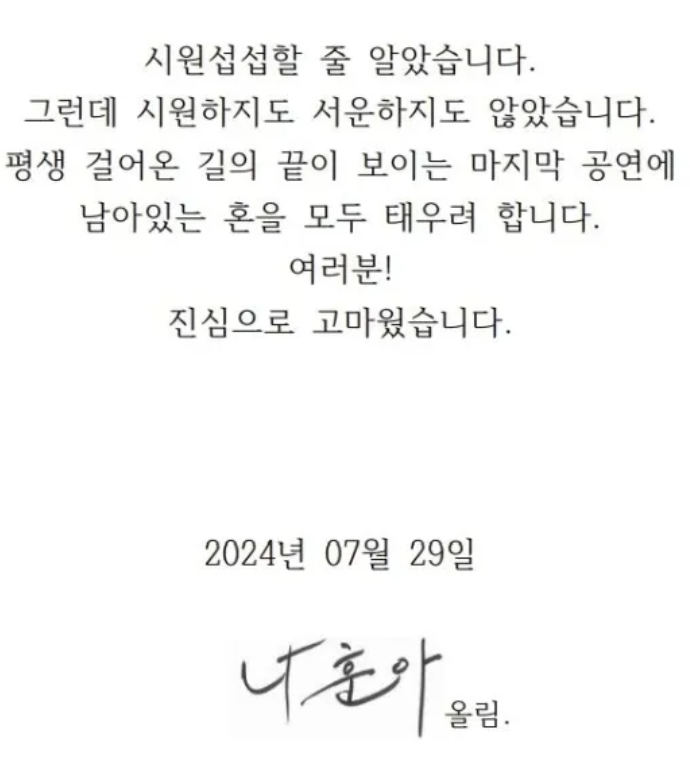 2024년 전 국민을 떠들썩하게 했던 그의 은퇴소식과 함께 나훈아의 마지막 전국투어 날짜가 발표되어 연일 많은 분들의 관심이 쏟아지고 있습니다. 나훈아 마지막 은퇴 콘서트인 만큼 이번에 나훈아 가수의 콘서트를 놓치면 영영 그의 모습을 콘서트장에서 보기 힘드시니 서둘러 예매(대전 8월 27일부터 티켓팅 시작!)하시기 바랍니다. 예매 사이트는 yes24 티켓 사이트에서 단독으로 진행됩니다.