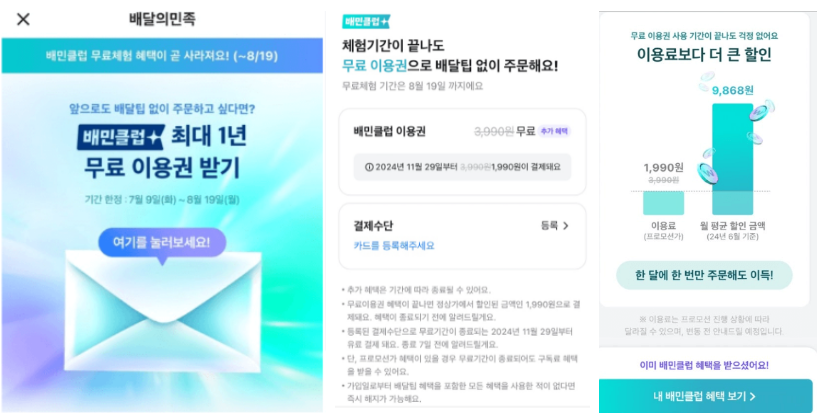"배민클럽 무료체험으로 무료 배달받으세요! 8월 19일까지입니다!"