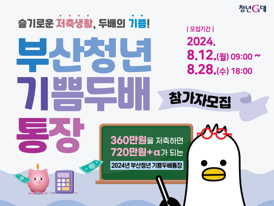 부산시 기쁨두배통장은 '부산청년 기쁨두배통장 누리집' 홈페이지에서 신청 가능하니 참고하시기 바랍니다.