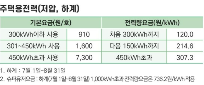 누진세는 여름철 뿐만이 아닌 1년 내내 전기 사용량에 따라 누진세가 적용됩니다.