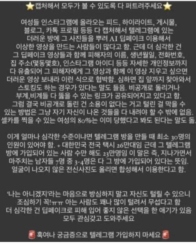 모쪼록 피해 학생이 더이상 발생하지 않도록 텔레그램 딥페이크 범죄는 이번에 반드시 근절되어야 하는 정말 악질 범죄입니다.