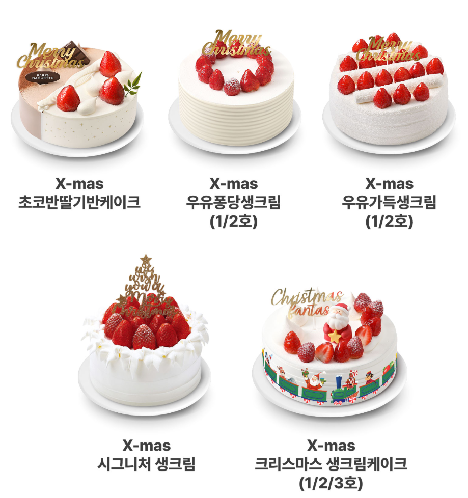 2024년 파리바게뜨 크리스마스 케이크 종류는 아래와 같습니다.