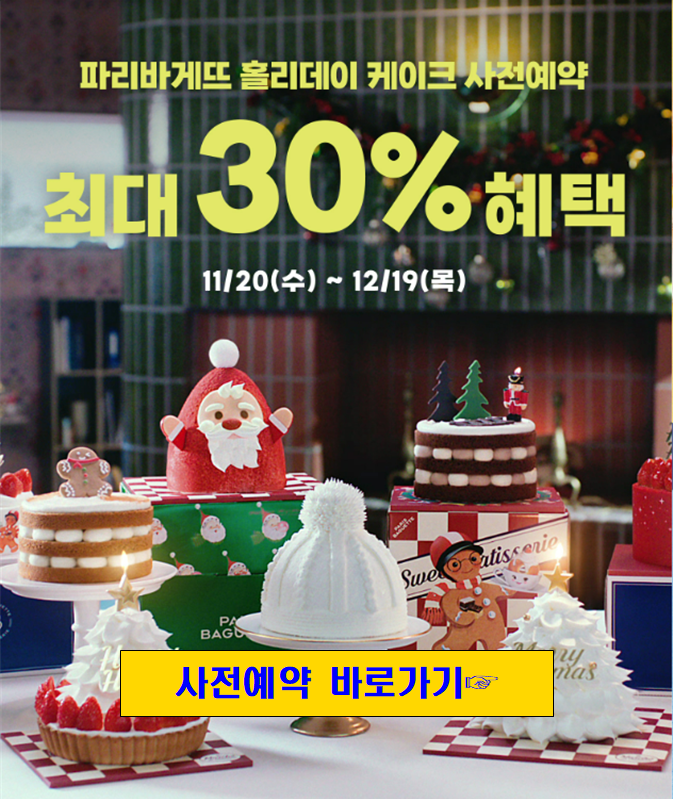 파리바게뜨 크리스마스 케이크 사전예약 정보는 아래와 같습니다.