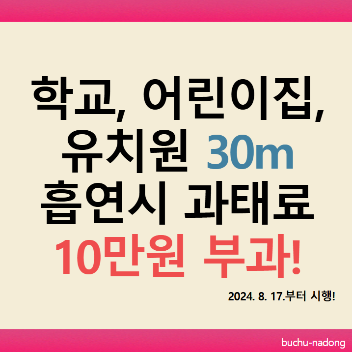2024년 8월 17일부터 어린이집 및 유치원 경계에서 10m까지였던 금연구역이 30m로 확대됩니다. 또 초, 중, 고등학교 경계에서 30m까지를 금연구역으로 지정한다고 보건복지부에서 밝혔습니다.